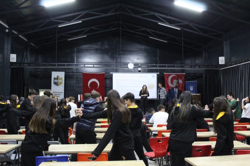 GADEM (Gençlik ve Aile Destek Merkezi) uzmanları tarafından yürütülen programda, öğrencilerin birbirleriyle olan iletişimlerinde empati kurmanın önemi, zorbalık davranışlarının sonuçları ve sağlıklı sosyal ilişkilerin nasıl geliştirilebileceği üzerine interaktif bir eğitim gerçekleştirildi.